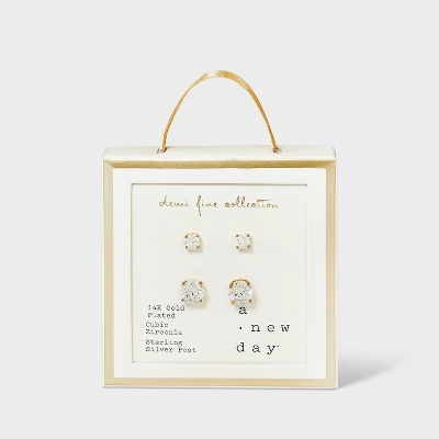 14K Gold Plated Cubic Zirconia Duo Stud Earring Set 2pc – A New Day™ Gold