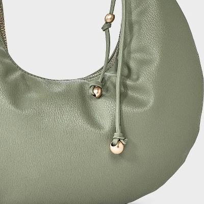 Sport a fashionable look no matter the occasion by carrying the Metal Handle Crescent Handbag from A New Day™. This handbag is designed in the shape of a crescent with a single metal handle for standout appeal. It has a main compartment with an unstructured design, and the zipper closure helps keep the contents neatly contained.