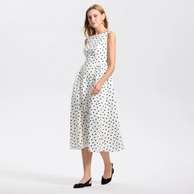 Embrace timeless elegance with this cap sleeve midi dress from A New Day™. The crisp cotton poplin holds its shape, while the boat neck and backless design add modern sophistication. The hip gathering details create flattering movement for weddings or garden parties.