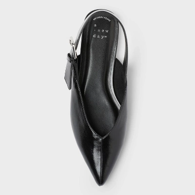 Take on casual or dressier outings in sleek style with the Victoria Slingback Side Buckle Flats with Memory Foam Insole from A New Day™. Made from polyurethane with lining, these slingback flats feature memory foam insoles for all-day comfort. Designed with an almond toe in a medium width, they secure with an adjustable metal buckle for a customizable fit.